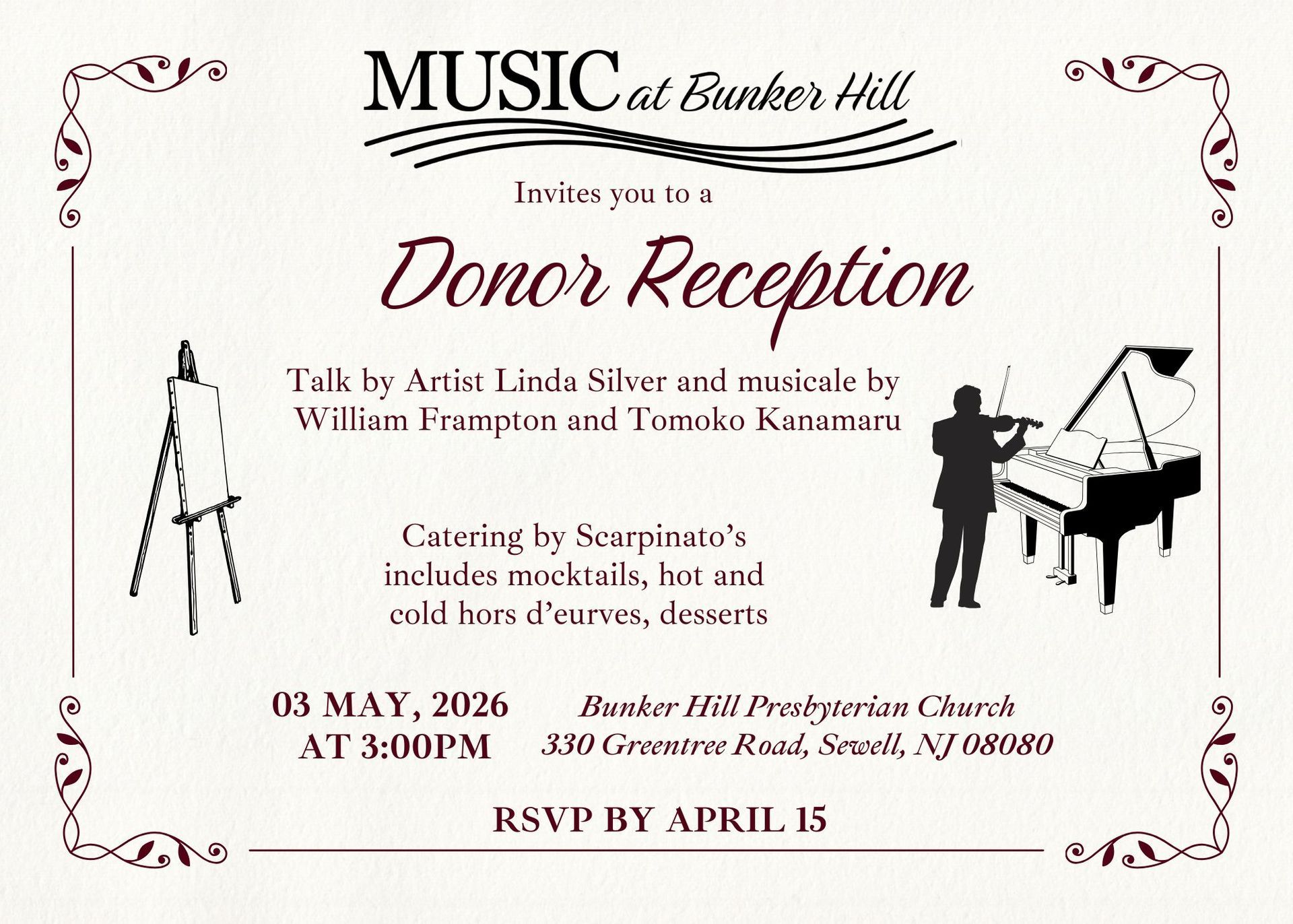 This program is made possible in part by funding from The Gloucester County Cultural and Heritage Commission at Rowan College of South Jersey, a partner of the New Jersey State Council on the Arts/Department of State and the National Endowment for the Arts.